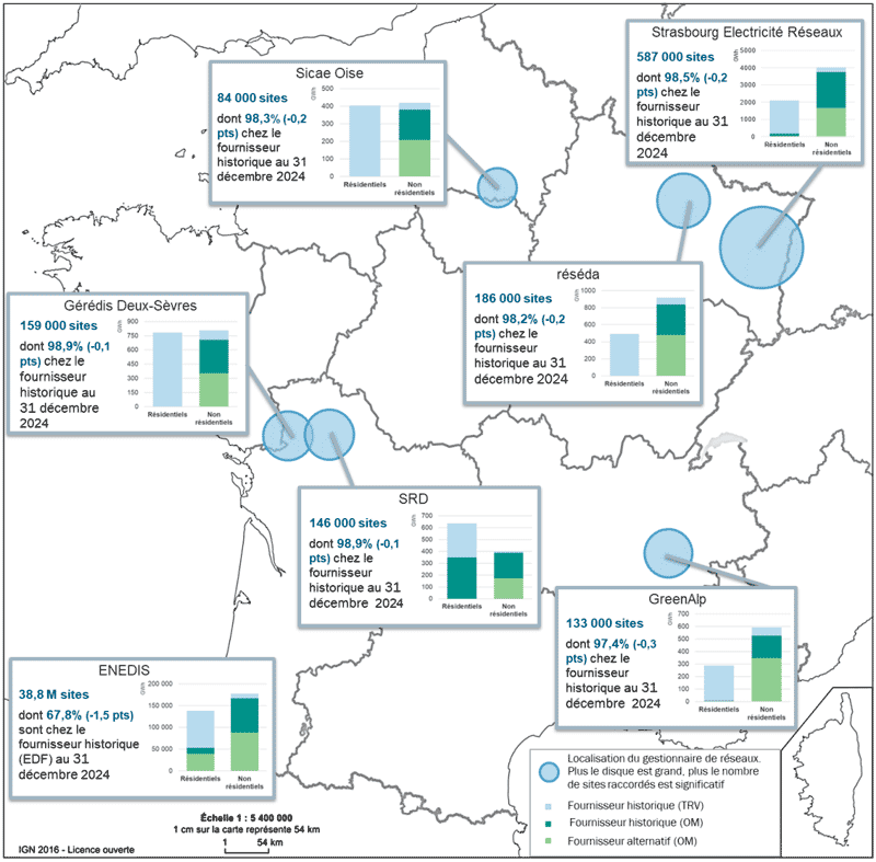 De même, ce n'est pas Enedis le gestionnaire du réseau de distribution électrique à Strasbourg, mais Strasbourg Électricité Réseaux.